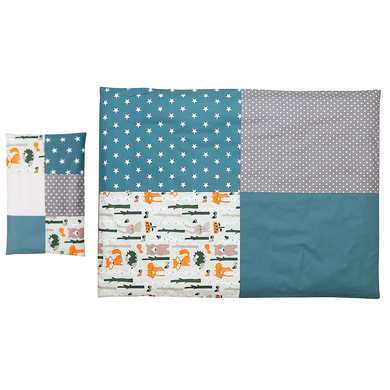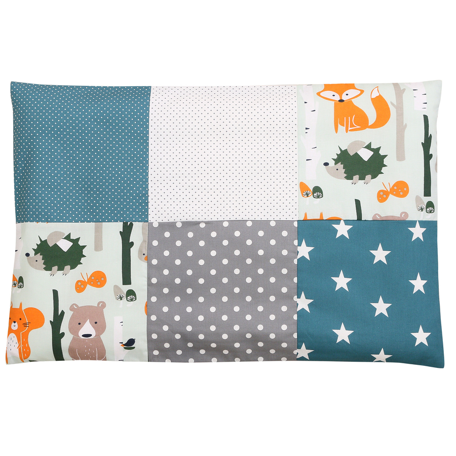 La biancheria da letto per bambini in bellissimi colori e motivi delizierà il tuo bambino. Sono state cucite a mano quattro grandi toppe con diversi motivi per formare il copriletto. La parte posteriore è semplice e con piccoli pois. La pratica cerniera in plastica senza maniglia a spinta è stata nascosta. Il rivestimento del cuscino, di 40 x 60 cm, ha anch'esso uno stile a toppe. Il marchio ULLENBOOM utilizza solo cotone di alta qualità certificato secondo lo standard ÖkoTex per la biancheria da letto, testato in modo affidabile per le sostanze nocive e antiallergico secondo le specifiche per neonati e bambini. Questo set è lavabile in lavatrice a 40°C. Dettagli del prodotto: 100 x 135 e 40 x 60 cm (copripiumino, federa) Cerniera in plastica con cursore senza maniglia nascosta integrata Parte posteriore decorata con piccoli pois Quattro grandi toppe diverse e sulla parte superiore Materiali: 100% cotone, certificato ÖkoTex Testato per le sostanze inquinanti, antiallergico Tessuto molto morbido Lavabile in lavatrice fino a 40°C Vantaggi generali: Design e materiale adattato alle esigenze dei bambini Prodotto in una piccola impresa familiare dell'UE I colori si abbinano a tutti i prodotti ULLENBOOM di questa serie