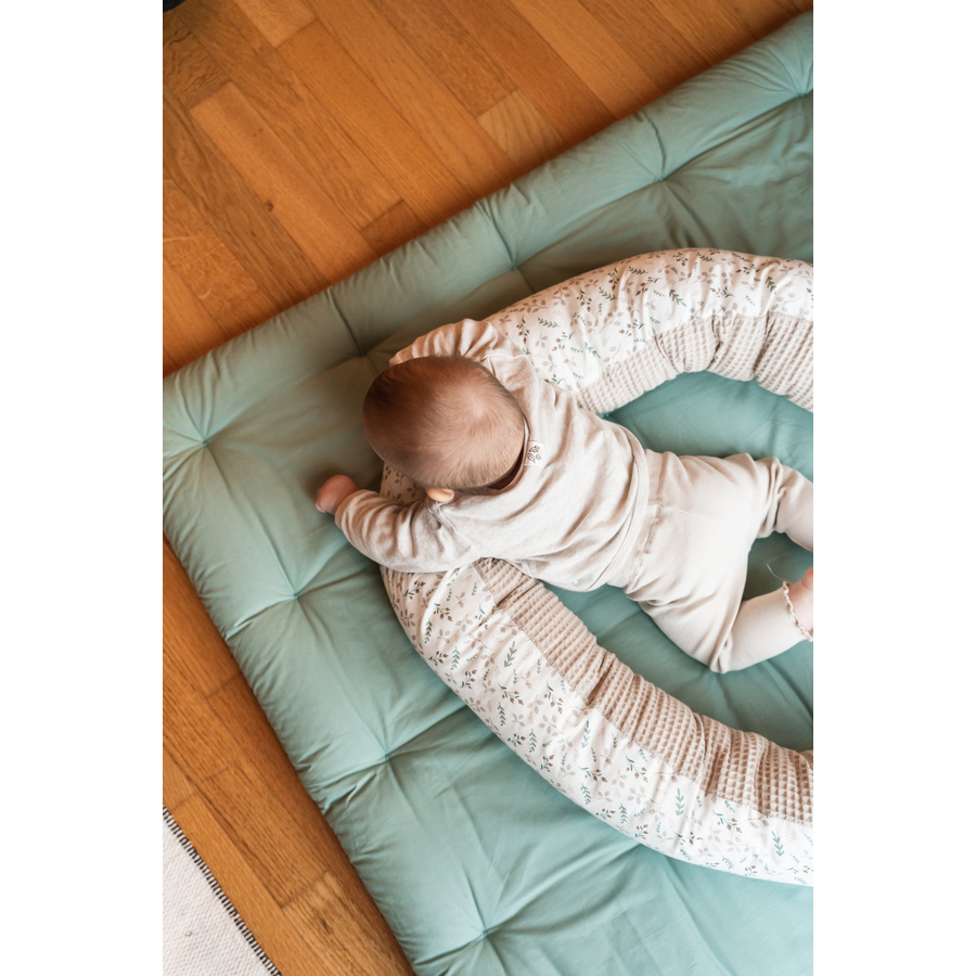 Dettagli del prodotto: Ha un diametro di circa 13 cm Utilizzabile da entrambi i lati Nessun fruscio o altri rumori quando si sposta il serpente del letto Materiale e cura: Materiale: 100% cotone Tessuto di cotone certificato secondo OEKO-TEX® Standard 100, classe di prodotto I (specialmente per bambini e neonati) Lavabile fino a 40 °C Dimensioni e peso: Dimensioni: 200 cm Peso: 970 g Incluso nella consegna: Serpente a 1 letto