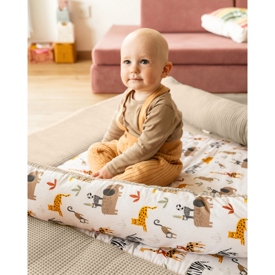 Dettagli del prodotto: Ha un diametro di circa 13 cm Utilizzabile da entrambi i lati Nessun fruscio o altri rumori quando si sposta il serpente del letto Dimensioni: 300 cm Colore: savana Materiale e cura: Materiale: 100 % cotone Lavabile fino a 40°C Tessuti di cotone certificati secondo l'OEKO-TEX® Standard 100, classe di prodotto I (specialmente per bambini e neonati)