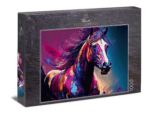 Ulmer Puzzleschmiede - Puzzle per cavalli "venti colorati" 1000 pezzi - Il potente cavallo con criniera che soffia nel vento - Motivo colorato della collezione Puzzle Cavalli
