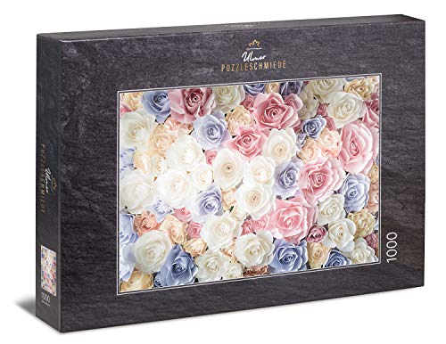 Ulmer Puzzleschmiede - Puzzle Rosa Amore - Petali di Rosa Festivi in Design Vintage