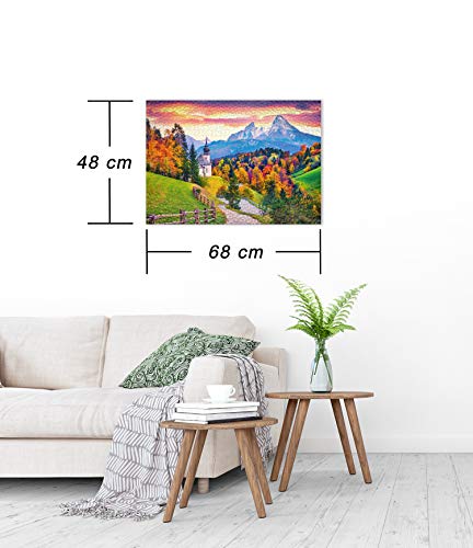 Un meraviglioso motivo di montagna: il Watzmann dietro il bosco autunnale di foglie intorno alla famosa chiesa di pellegrinaggio al tramonto - adatto anche per principianti di 1000 pezzi