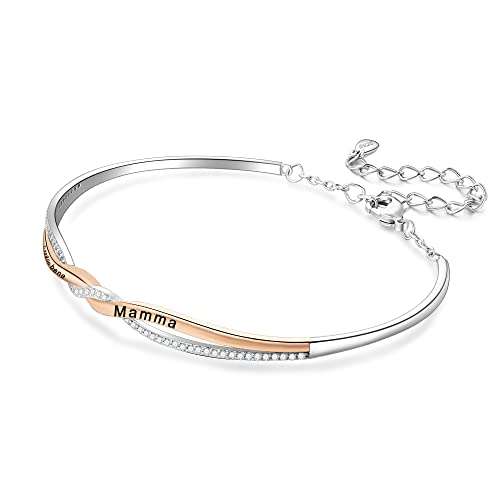 ULOMEOO Bracciale Donna Inciso Ti Voglio Bene Mamma Metallo Gioielli Braccialetto Infinito con Cristallo Regalo Natale Festa della Madre Compleanno