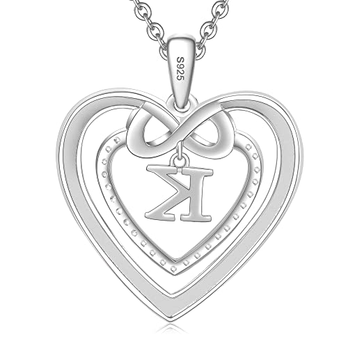 ULOMEOO Collana Donna Iniziali Argento 925 Pendente Ciondolo Cuore Infinito Lettera K con Cristallo Gioielli Regalo Mamma Madre Nonna Moglie Figlia Fidanzata