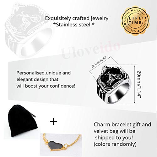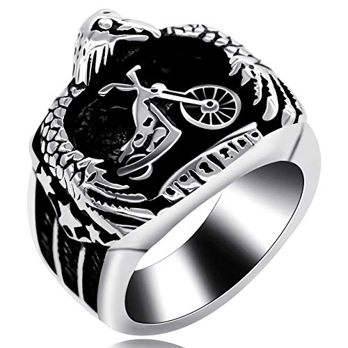 Uloveido Anello Punk Eagle per Moto da Uomo Anello da Cocktail per Biker Largo in Acciaio Inossidabile per Regalo di Compleanno per Vacanze Sportive