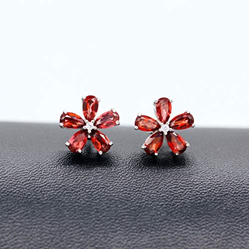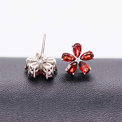 Uloveido CR003 - Orecchini a perno in argento Sterling 925 con granato naturale 2 ct, con fiore di pietra rossa e Argento, colore: Rosso, cod. CR003