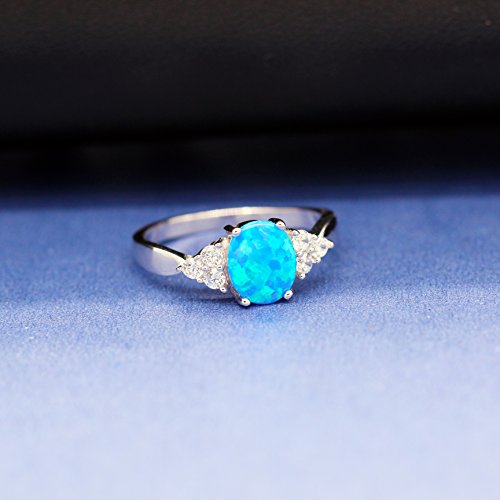Uloveido 2.96g forma ovale simulato blu opale di fuoco vuoti anelli promessa per lei, gioielli da sposa in argento sterling 925