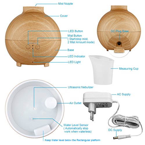 L'ULTIMA ALTA QUALITA' 500ml 8-12 ore Umidificatore Ultrasuoni /Diffusore di Aromi / Diffusore Oli Essenziali, Venatura del legno
