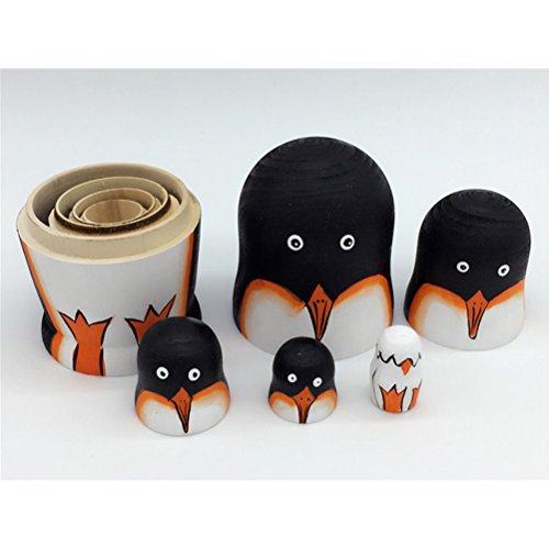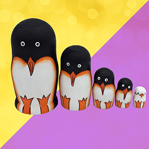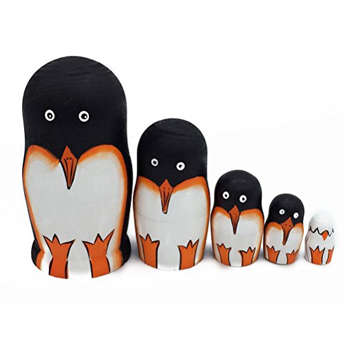 Ultnice bambole a incastro Russi Matryoshka pinguini in legno stacking giocattolo 5pcs
