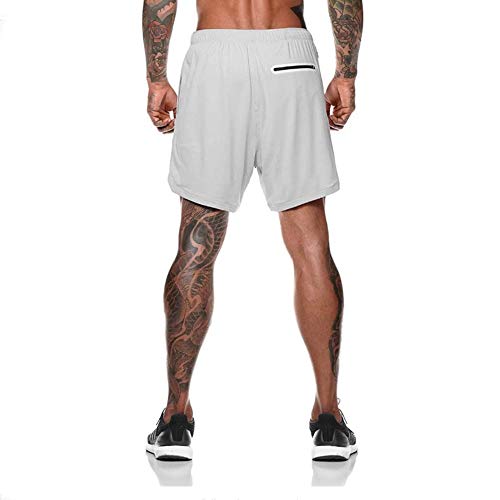 Ultra Dry Men's 2-in-1 Running Shorts Workout Training Short with Inner Compression Short And Zip Pocket - Grey - Large