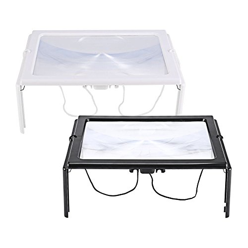Ultra-sottile A4 3 x piena pagina di grandi dimensioni PVC Magnifier Giant pieghevoli con lente di ingrandimento con 4 LED per lettura cucire maglieria - bianco