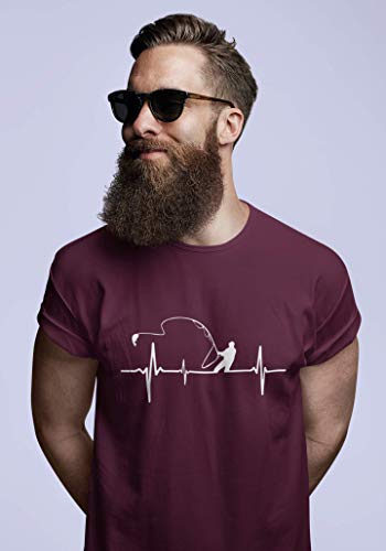 Ultrabasic - Uomo Grafico Design Maglietta Pescatore Battito Stampate bordò