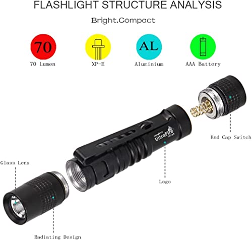 UltraFire Torcia LED,Mini Torcia,Impermeabile Penlight con clip per Manutenzione Macchinari e Assistenza Medica,Torcia Tascabile Portatile,UF-3AS 70 Lumen Torcia Piccola (5 pacco)
