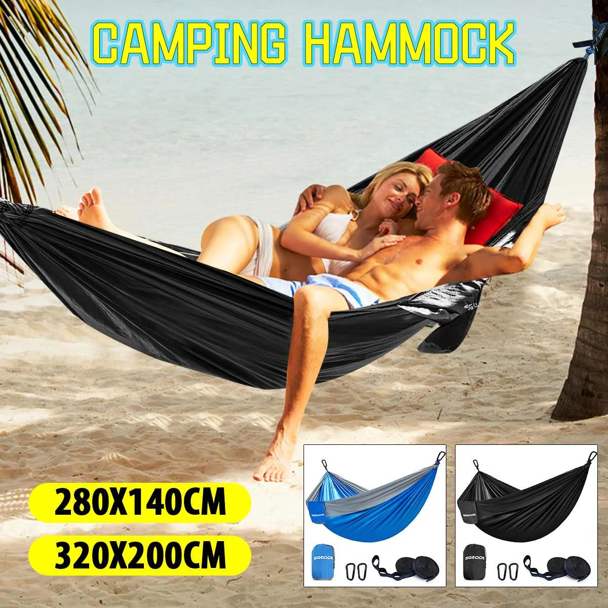 Ultralight Single and Double Hammock Adult Outdoor Travel Survival Hunting Sleeping Bed 300 Kg Quick Dry with D Buckle 1 Pair