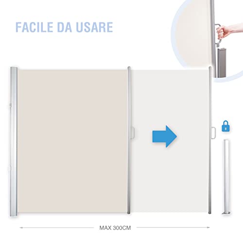 Ultranatura Tenda laterale Maui, tenda aparete laterale estensibile, tenda rullo laterale per balcone, terrazza e giardino, sole, vento e privacy protezione, robusta, 300x180 cm (LxH), Crema