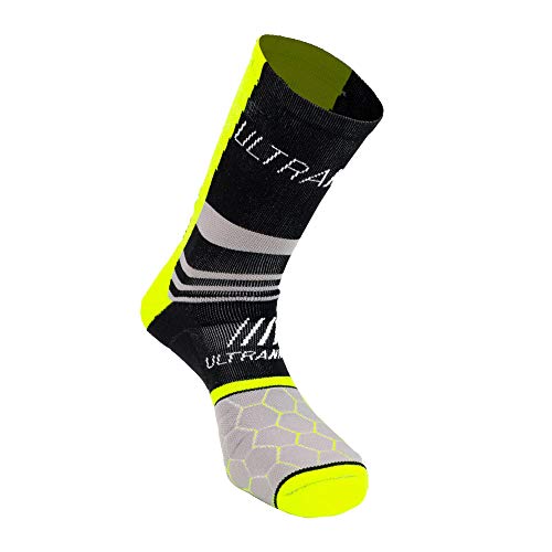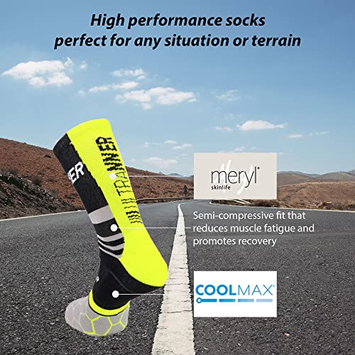 ULTRANNER - ENOS | Calze da Trail Running da Uomo e da Donna Lunghe - Calze Coolmax Anti Vesciche Semi-Compressivi - Calzino con Resistenza - Colore Giallo Taglia 37 a 39