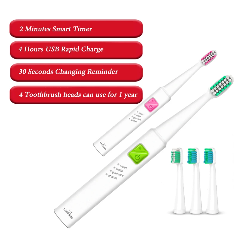 U1 Ultrasonic Electric Toothbrush Replacement Heads USB Rechargeable Sonic Electroic Toothbrush Timer Tooth Brush Oral Hygiene