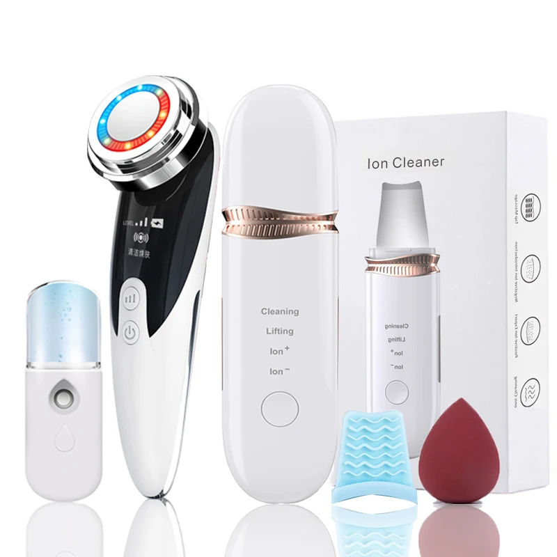 Ultrasonic Skin Scrubber Cleaning Facial Massager Set Skin Care Acne Blackheads Remover Cleaner Tool Peeling Cavitation Facial