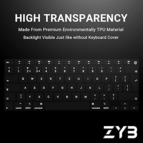 ✔️ La ZYB Copri tastiera MacBook Realizzato con materiale TPU ad alta trasparenza e ingegneria, ultrasottile fino a 0,12 mm, non danneggerà lo schermo e faciliterà la digitazione.