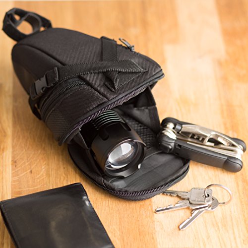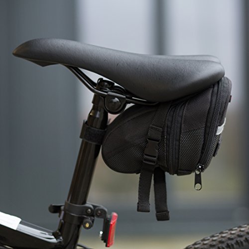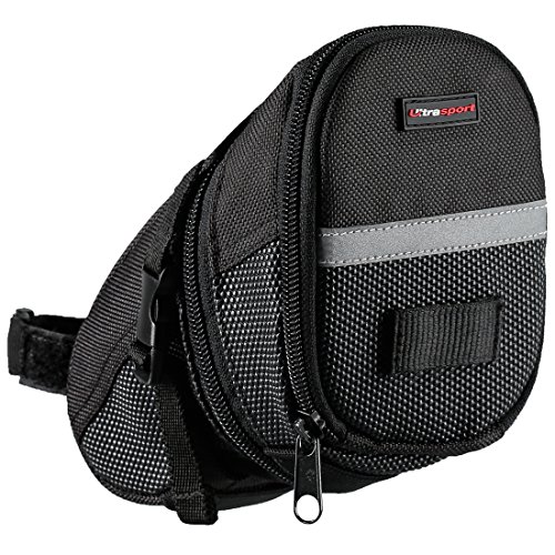 Ultrasport Borsa da sellino per bicicletta, impermeabile e compatta / vano spazioso per escursioni in bicicletta, facile fissaggio con chiusura a velcro, strisce catarifrangenti cucite, nera