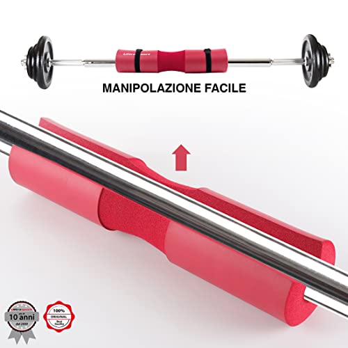 L'imbottitura del paranuca è compatibile con la maggior parte delle sbarre standard olimpiche - questo strumento di aiuto al'allenamento è leggero e può essere portato anche in palestra