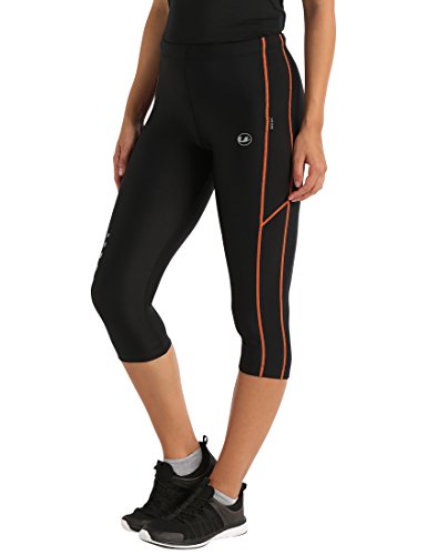 Ultrasport Panta jogging 3/4 per donna con effetto compressivo e funzione Quick Dry, Nero/Arancione, S