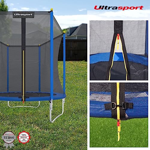 Ultrasport Trampolino elastico giardino Uni-Jump, per bambini, Ø 183 cm, set completo comprendente tappetino salto, rete sicurezza, palo rete imbottito e copertura bordi, Blu