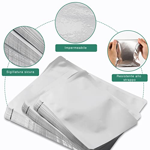 [IN 3 MISURE] Dimensioni dei sacchetti: 50 sacchetti 10 x 15 cm, 50 sacchetti 12 x 17 cm, 50 sacchetti 15 x 20 cm. Peso: circa 860 grammi