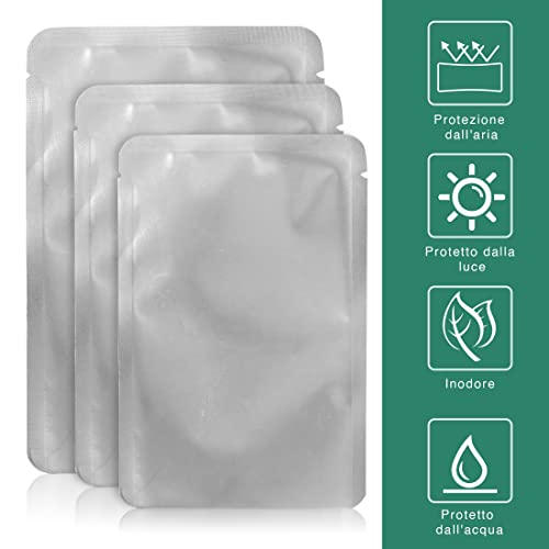 Ultratec Set sacchetti in alluminio, 3 misure con 50 sacchetti sottovuoto cadauna in set, incl. 50 etichette alimenti, i sacchetti sottovuoto sono ideali tè, spezie, prodotti cosmetici liquidi, ecc.