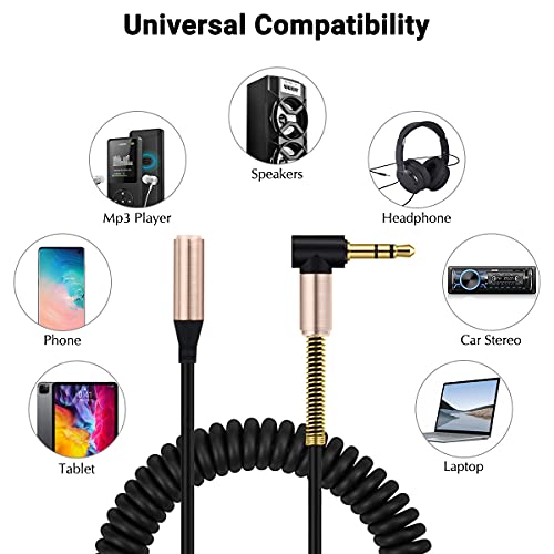 ULTRICS Cavo Prolunga Audio, Jack Stereo 3,5mm Maschio a Femmina Spirale Cuffie Cavi, Placcato Oro Angolare Estensione Cable Compatibile con iPhone iPad iPod Samsung PC MP3 Tablet Altoparlanti