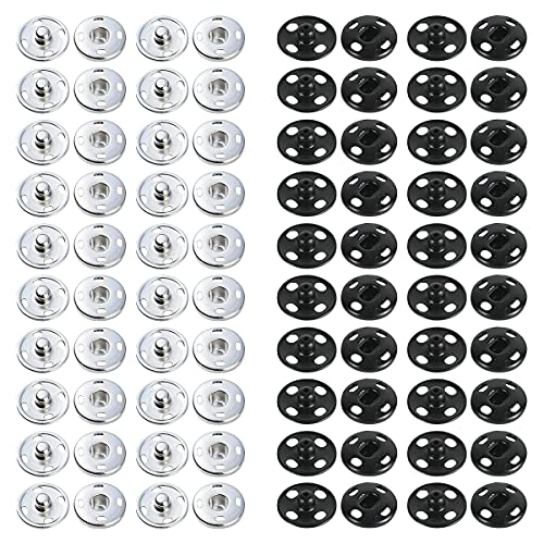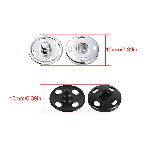 ULWSY Bottoni a pressione, 40 set di bottoni automatici da cucire in metallo da 10 mm per vestiti da borsetta da cucito fai da te, nero e argento