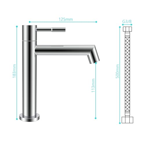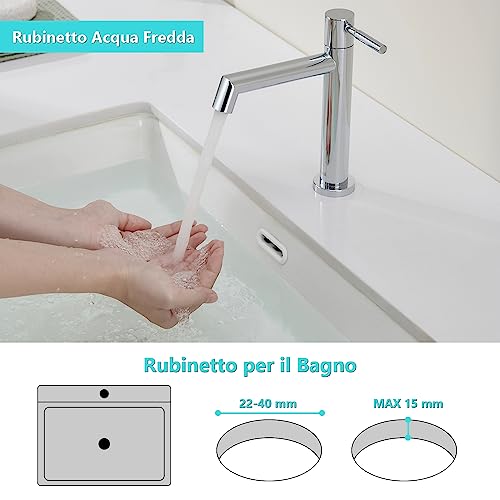 【Nota: Questo rubinetto eroga solo acqua fredda, senza funzione di acqua calda.】Materiali Autentici: I nostri rubinetti per il bagno sono realizzati in acciaio inossidabile di alta qualità (SU304), che ti offre acqua priva di piombo. Grazie al design uniforme, sono durevoli e resistenti all'invecchiamento e alle rotture.
