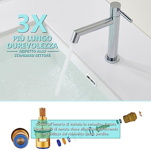 Ulytid Rubinetto Dell'Acqua Fredda, Rubinetto per Bagno Cromato Rubinetto Monocomando per Lavabo con Spruzzatore Removibile, Rubinetto per Bagno Risparmio Idrico, Altezza del Beccuccio 113mm