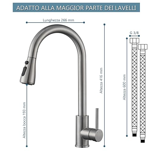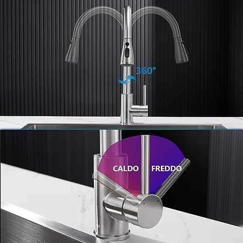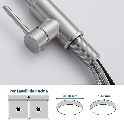 【Installazione rapida】 I nostri miscelatore cucina estraibile includono istruzioni dettagliate per l'installazione e tutti gli accessori, nonché uno stabilizzatore tria
