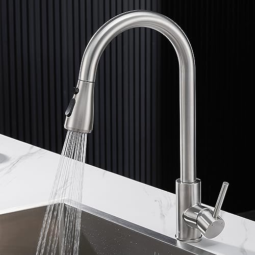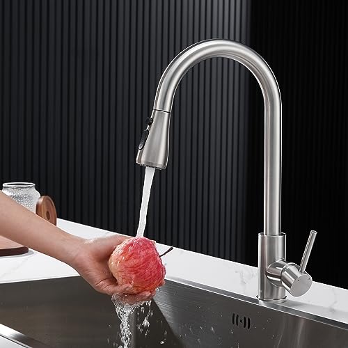 Ulytid Rubinetto Lavello Cucina con Doccetta Estraibile, Miscelatore Cucina a 3 Modalità, Girevole a 360° Rubinetti Cucina Monocomando con Bocca Alta in Acciaio Inox Spazzolato, Acqua Calda e Fredda