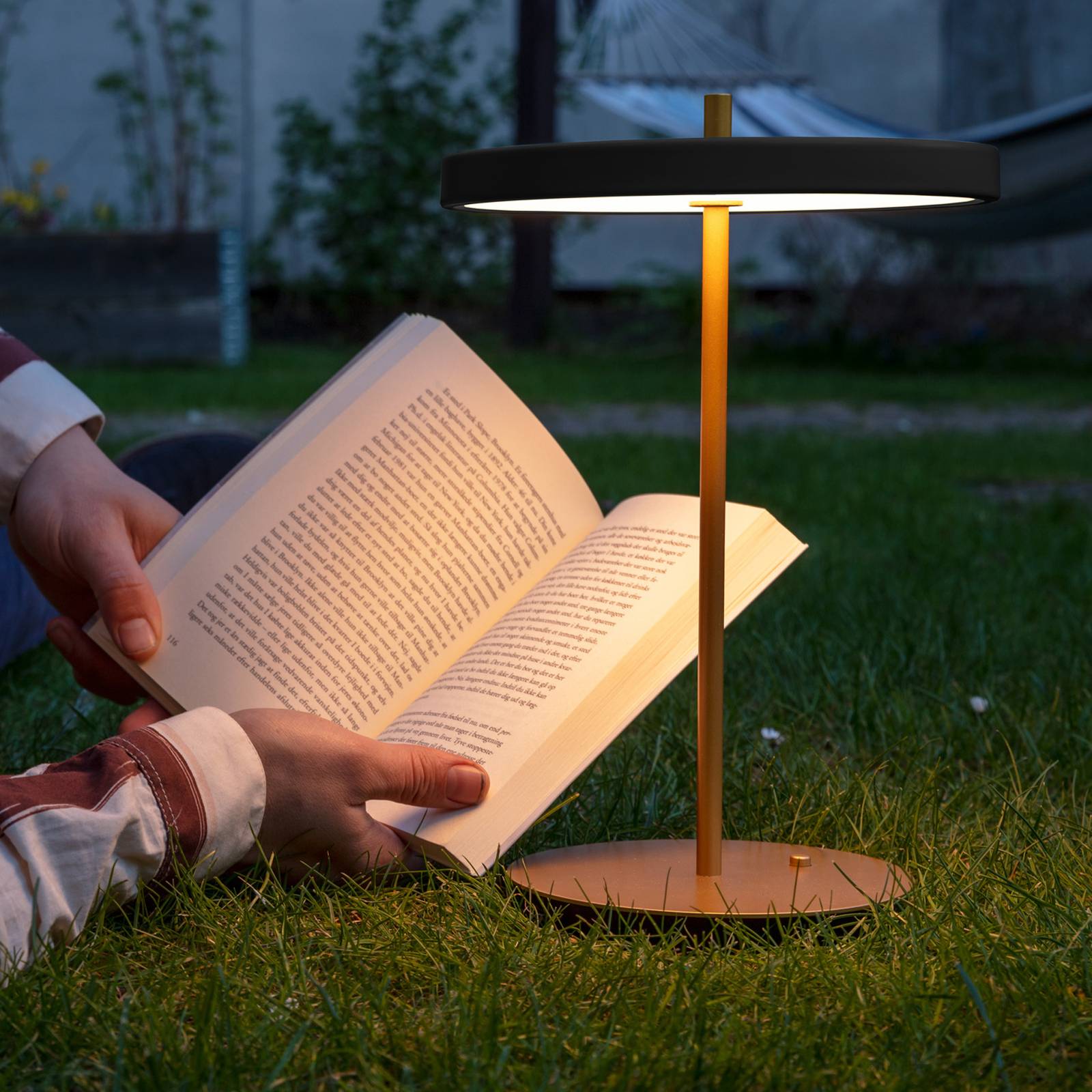 Lampada da tavolo a LED Asteria Move con batteria per funzione portatile Graziosa e dotata di un'incredibile libertà di movimento, la lampada da tavolo a LED Asteria Move della casa di design danese UMAGE può essere utilizzata ovunque in casa. Grazie alla batteria agli ioni di litio incorporata, la lampada può fornire luce per un massimo di 35 ore in media senza collegamento alla corrente. Il paralume rotondo ospita LED bianchi caldi che emettono una luce accogliente e confortevole, distribuita senza abbagliare, in modo morbido e uniforme su tutti i lati dal diffusore integrato. Tramite il dimmer a sfioramento sul supporto altrettanto rotondo e massiccio, la luce può essere regolata in quattro diversi livelli di luminosità premendo più volte l'interruttore. La collezione Asteria è stata progettata dal co-fondatore e Chief Creative Developer, Søren Ravn Christensen. Il designer è un autodidatta e ha il raro dono di combinare design ed economia. A proposito della sua collezione, egli stesso afferma: "La collezione Asteria, creata all'incrocio tra design, tecnologia e artigianato, presenta luci LED integrate in una forma elegante e minimalista". Insieme all'attuale amministratore delegato, Jacob Nannestad Hansen, Christensen ha fondato la società UMAGE by VITA copenhagen nel 2008. I produttori di lampade di design pongono particolare enfasi sui materiali sostenibili e sulla tecnologia di alta qualità nella produzione delle loro lampade, al fine di offrire al cliente il massimo vantaggio possibile. Il concetto ha avuto successo. Oggi, infatti, l'azienda danese di illuminazione è rappresentata in più di 50 Paesi del mondo con oltre 1.500 filiali - portatile - a batteria - luminosità regolabile in quattro fasi: 1° fase 5 lumen circa 168 ore 2° fase 20 lumen circa 50 ore 3° fase 50 lumen circa 20 ore 4° fase 100 lumen circa 10 ore