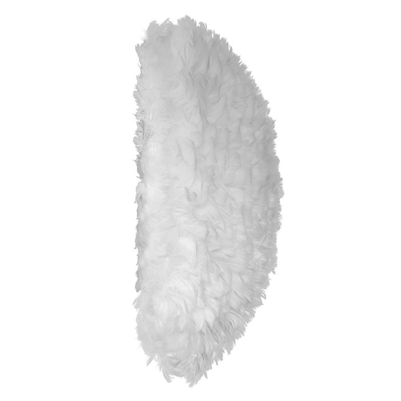 Paralume sorprendente in abito bianco piuma - lampada da parete Eos up grande Le piume non solo caratterizzano l'aspetto della lampada da parete Eos up large, ma anche la luce che emerge. Questo assume un carattere fortemente sommesso e delicato. Il produttore di apparecchi di illuminazione UMAGE e la sua forza motrice, Søren Ravn Christensen, perseguono l'obiettivo di implementare il design scandinavo in apparecchi di illuminazione dal carattere naturale e di portarlo oltre. Questo è evidente anche in Eos in grande. Una semplice base a forma di disco monocromatico, che riprende l'idea di base dello stile scandinavo, diventa un accattivante eye-catcher grazie alla guarnizione continua con vere piume d'oca. Oltre al montaggio a parete, può essere utilizzata anche come plafoniera. - Per la pulizia della lampada da soffitto Eos up large, si raccomanda un asciugacapelli. - Non si usano piume di animali vivi.