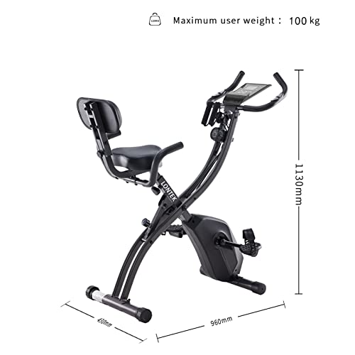 UMAY LONTEK Cyclette da Camera Pieghevole 2 in 1, con Fasce di Resistenza e Schienale, Ciclette per Casa a Resistenza Magnetica a 8 Livelli, Display LCD, Sensore di Pulsazioni - Peso Massimo 120 kg
