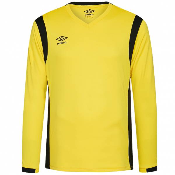 Marca Umbro Materiale 100% poliestere Logo del marchio stampato sul petto a destra a V e polsini a coste Inserto traforato in colore a contrasto lungo le transizioni delle braccia e sui fianchi esteso indietro Maniche lunghe materiale leggero piacevole comfort NUOVO con etichetta & imballaggio originale