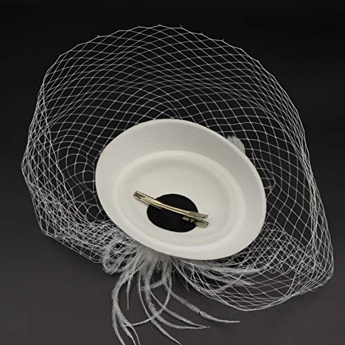 Umeepar - Cappellino Pillbox da Donna con Fascia, per Matrimonio, Feste da tè, con Cerchietto, molletta per Capelli e veletta - Bianco - Taglia Unica