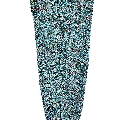 Umeicool, coperta a uncinetto per tutte le stagioni, a forma di coda di sirena, con motivo a onde, per bambini o adulti Blue