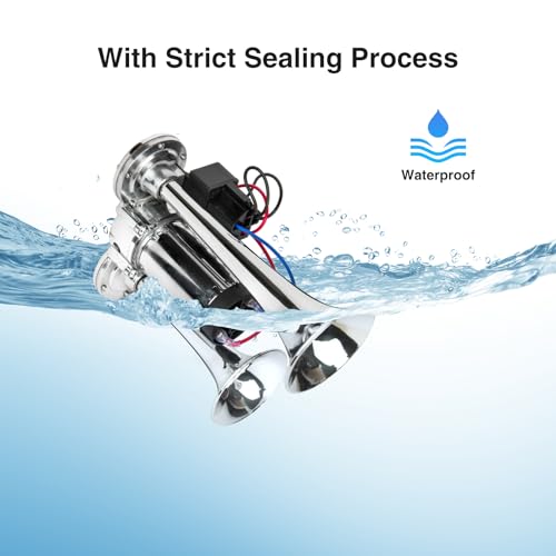 【RESISTENZA AL CLIMA】 Il clacson può funzionare in ambienti di acqua dolce o salata ed è adatto a quasi tutte le condizioni atmosferiche. È abbastanza forte da resistere a qualsiasi forma di tempo e bufera di neve.