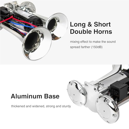 Umelee Tromba d'aria 12V 150 dB con compressore, Trombe auto, Clacson per camion, Clacson per auto, Kit Tromba per tutti i veicoli, Accessorio per auto, Accessorio per camion