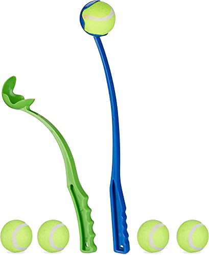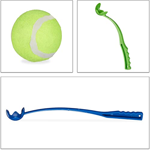 Set: lanciapalle per cani in 2 diverse misure - include 5 palline da tennis - divertimento per cani e proprietari