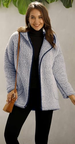 Les umes Cappotti con cappuccio in pile da donna con chiusura a zip, cappucci morbidi, cardigan, giacca invernale soffice, cappotto con tasca, A5-Blu Navy, S