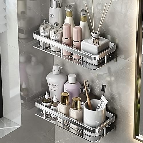 【La confezione contiene】Include 2 mensole per doccia colo argento (30,2 x 13,2 x 5,5 cm), 4 toppe, 1 piccola chiave inglese, 4 ganci rimovibili (i ganci possono essere usati per posizionare spugne da bagno, asciugamani, ecc.)