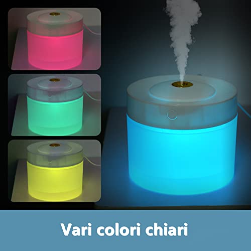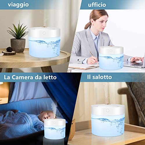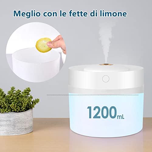 Umidificatore di grande capacità L'umidificatore a ultrasuoni ha un grande serbatoio dell'acqua da 1,2 litri, che consente all'umidificatore di funzionare continuamente per un massimo di 12-36 ore. Umidificatore d'ambiente ideale per famiglie come camerette, camerette, uffici o camerette.