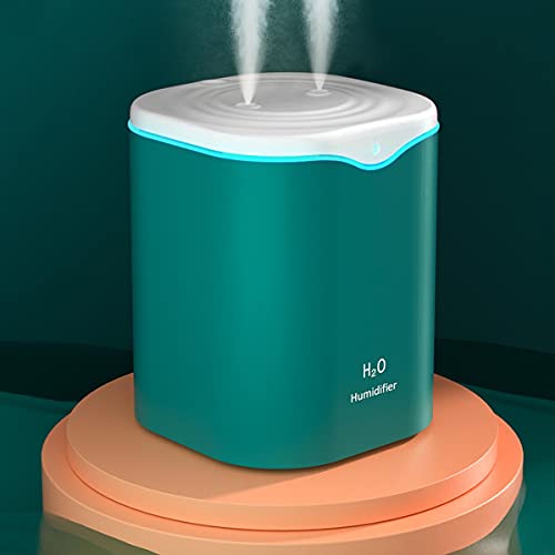 Umidificatore Ambiente Oli Essenziali 2000ML Umidificatore Ultrasuoni con Doppio Ugello,2 Regolabile Modalità Nebbia,Super Silenzioso,13x13x16CM (Verde)