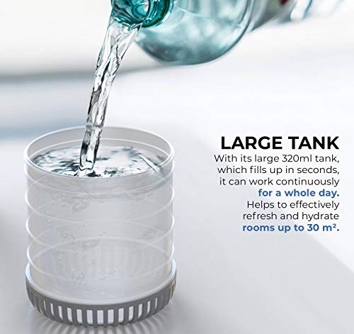 ✅ SUPER SILENZIOSO e SICURO. Umidificatore estremamente silenzioso con un livello di rumore inferiore a 30 dB durante il funzionamento, così non disturberà il riposo dei tuoi bambini o il tuo lavoro. Dotato di spegnimento automatico intelligente si spegne automaticamente quando l'acqua nel serbatoio è esaurita, per una maggiore sicurezza. Facile da usare e si aziona con un solo pulsante. Grazie al capiente serbatoio da 320 ml, può funzionare ininterrotta