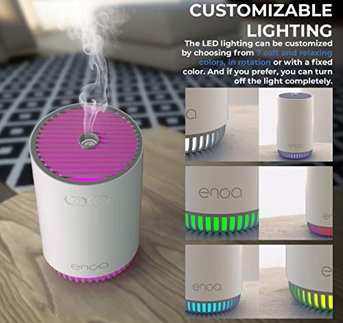 Umidificatore Ambiente Ultrasuoni, Diffusore Profuma Ambienti, Mini Umidificatore Bambini con Luce LED 7 Colori, 12 Ore di Autonomia, Silenzioso, Wireless, Spegnimento Automatico Senza Acqua, 320 ml